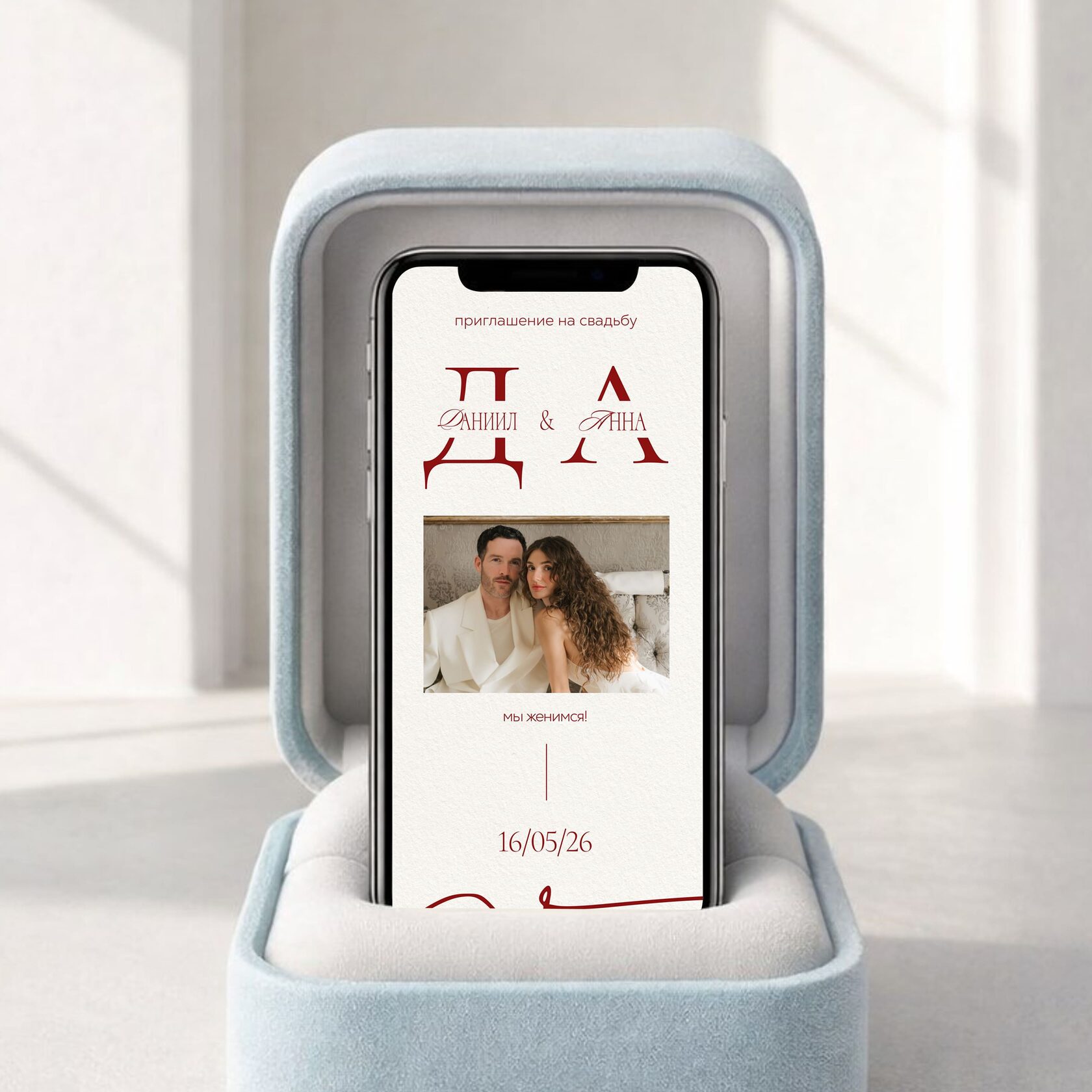 Интерактивный вступительный экран +1000 ₽В любой макет добавим эффектное открытие приглашения: анимация, которая создаёт первое «вау» ещё до просмотра сайта. (Например, открытие конверта в макетах